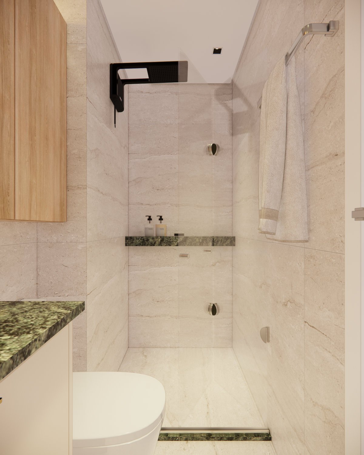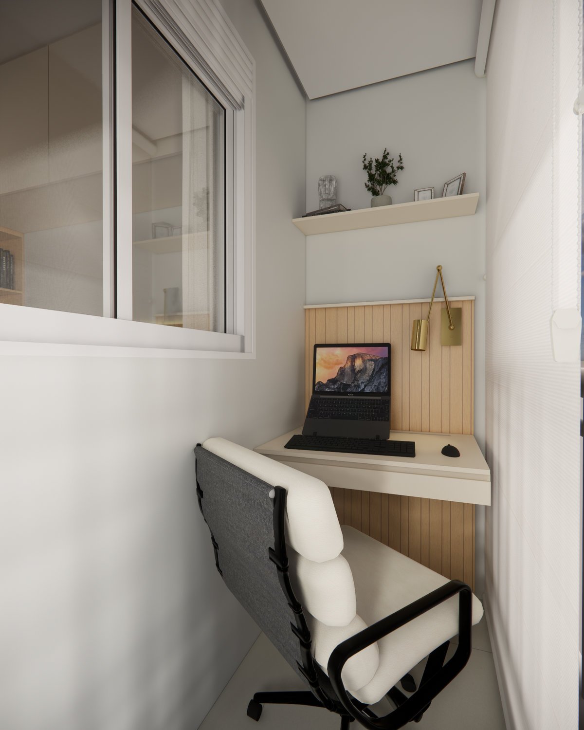 Minimalismo acolhedor define este apartamento compacto, projetado para aliar praticidade e leveza sem grandes investimentos. Tons claros remetem ao litoral, enquanto a pedra verde e texturas trazem identidade ao espaço. A marcenaria foi planejada para armazenar a coleção de livros e criar funcionalidade em cada canto, incluindo um office e área de descanso no terraço. A iluminação indireta, aproveitando canaletas já existentes, garante atmosfera suave. Um espaço compacto, mas intencional e cheio de frescor.